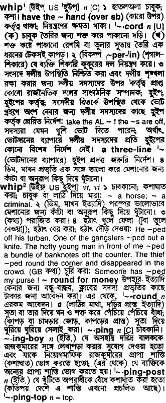 Thanks for using this online dictionary, we have been helping millions of people improve their use of the bangla language with its free online services. Bangla meaning of whip is as below...