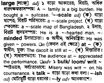 Thanks for using this online dictionary, we have been helping millions of people improve their use of the bangla language with its free online services. Bangla meaning of large is as below...