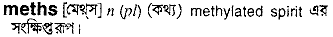 Thanks for using this online dictionary, we have been helping millions of people improve their use of the bangla language with its free online services. Bangla meaning of meths is as below...