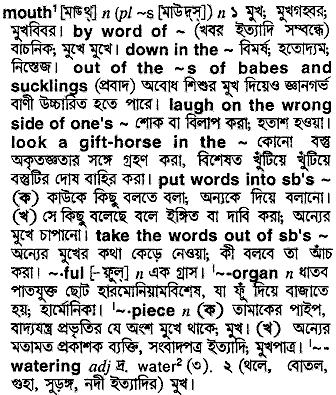 Thanks for using this online dictionary, we have been helping millions of people improve their use of the bangla language with its free online services. Bangla meaning of mouth is as below...