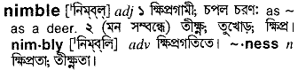 Thanks for using this online dictionary, we have been helping millions of people improve their use of the bangla language with its free online services. Bangla meaning of nimble is as below...