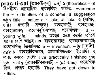 Thanks for using this online dictionary, we have been helping millions of people improve their use of the bangla language with its free online services. Bangla meaning of practical is as below...