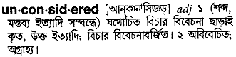 Thanks for using this online dictionary, we have been helping millions of people improve their use of the bangla language with its free online services. Bangla meaning of unconsidered is as below...