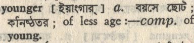 Thanks for using this online dictionary, we have been helping millions of people improve their use of the bangla language with its free online services. Bangla meaning of younger is as below...