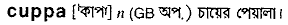 Thanks for using this online dictionary, we have been helping millions of people improve their use of the bangla language with its free online services. Bangla meaning of cuppa is as below...